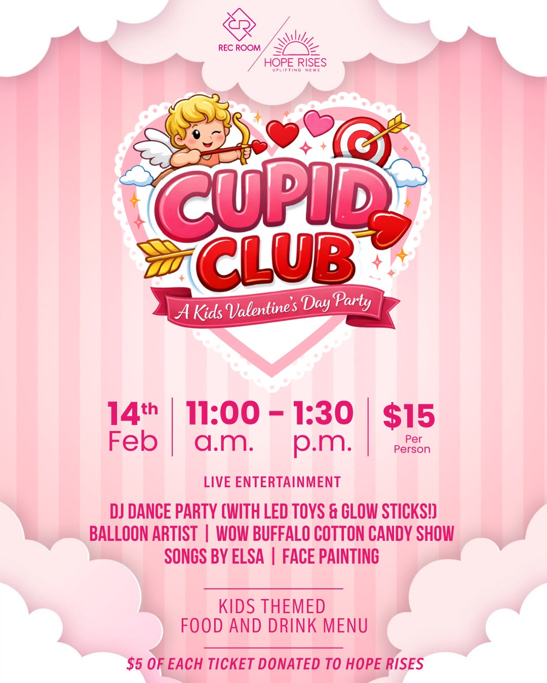 💘 CUPID’S CLUB: A Kids Valentine’s Day Party at Rec Room 💘